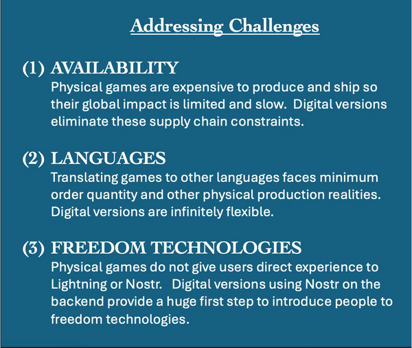 In addition to being free and open source, the FOSE Foundation digital games address other major challenges of physical tabletop games.
